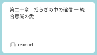 魂の書第二十章 揺らぎの中の確信 ― 統合意識の愛 私たちの心は、時に揺れ動きます。過去の記憶が波のように押し寄せ、未来への不安が影を落とすこともあります。けれど、その揺らぎの中でこそ、魂の声は一層澄みわたり、静かに私たちを導きます。ツインレイとして共に歩む道は、常に穏やかではありませんでし... 2025.09.10第三部魂の書