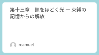 魂の書第十三章 鎖をほどく光 ― 束縛の記憶からの解放 私たちの心には、知らず知らずのうちにまとわりついた鎖がありました。それは過去から受け継いだ思い込みや、誰かに認められたいという切なる願いから生まれたもの。見えないその鎖は、私たちを自由から遠ざけ、愛することさえ不安にさせていました。けれども... 2025.09.10第二部魂の書