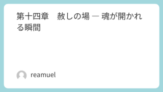 魂の書第十四章 赦しの場 ― 魂が開かれる瞬間 人は生きる中で、誰かを傷つけたり、逆に深く傷つけられたりします。その痛みは心の奥に沈み、長い時間をかけて固まり、やがて自分を閉ざす壁となっていきます。私たちもまた、家族や身近な人との関係の中で、解けないと思えるような葛藤を抱えていました。け... 2025.09.10第二部魂の書